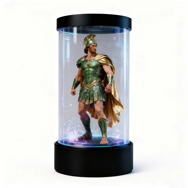 For example, mediumsized interactive hologram systems can display moving human-like visuals that appear to respond to user presence or scripted content. Although true volumetric holography remains the subject of research and advanced AR systems, commercially available holographic cylinders and display boxes are effective at creating eye-catching, life-like projections that enhance engagement.