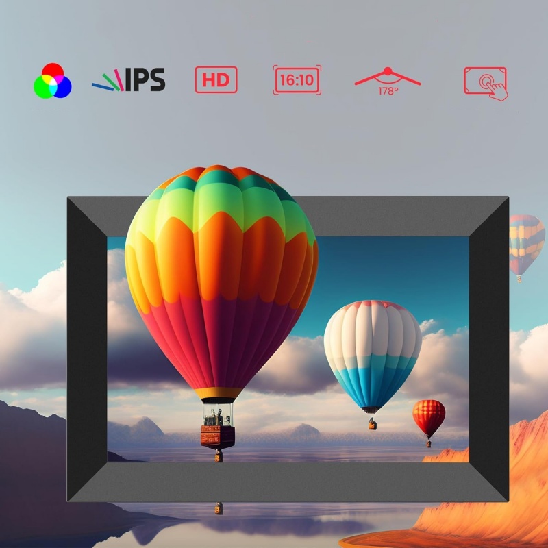 Explore Frameo App Features VIDEOThe 10.1-inch WiFi picture frame works seamlessly with the Frameo app, allowing instant photo and video sharing from anywhere. Easily manage albums, add captions, or adjust display settings directly from your phone. With a high-definition touchscreen, intuitive interface, and wide viewing angle, this smart frame turns digital sharing into a warm, family-connected experience. Perfect for home decoration or meaningful gifts. |