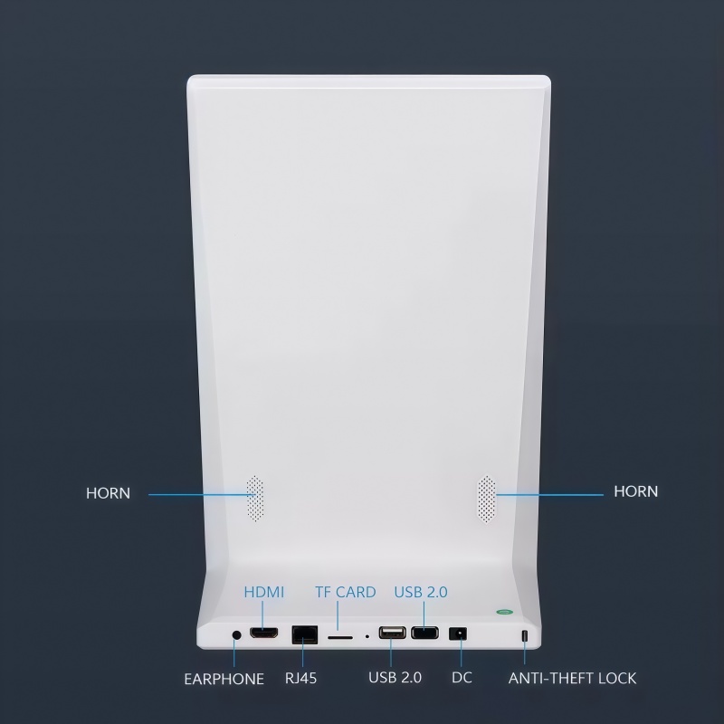 Running on Android 14, this L-shaped Android screen supports multiple interfaces and multi-format media playback. Rich I/O ports allow easy connection to peripherals, while the open Android system enables smooth operation of business software, POS applications, and customized programs, making deployment simple and efficient.