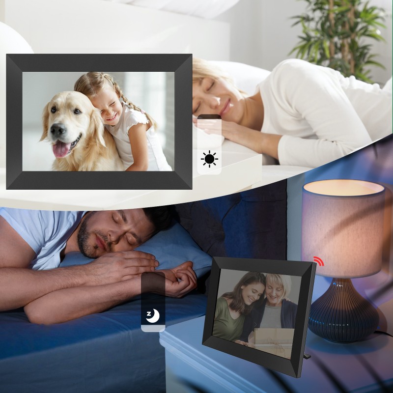 Auto Brightness AdjustmentThe smart photo frame automatically adjusts screen brightness at night, providing a comfortable viewing experience anytime. |