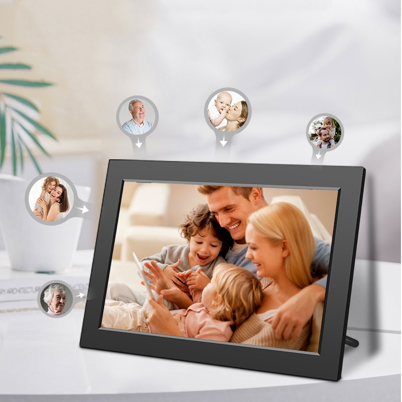 digital photo frame delivers an immersive viewing experience .Its multi-function design characteristics is allows placed on the walls or the desktop.Easily transfer wirelessly with a free app,the perfect way to share precious moments.