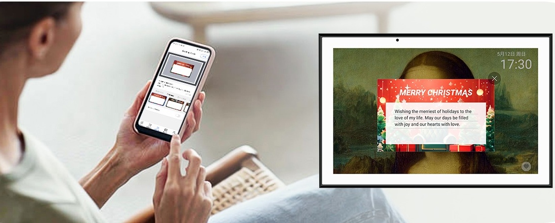 For end users giving the frame as a gift, preparation is simple but meaningful. Before wrapping the gift, photos and short videos can be preloaded into the frame. This can be done: